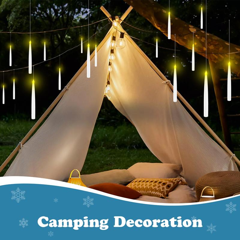 - Magical Gifts for Kids: These flameless candles with magic wand remote are packed in a high-grade gift package wihch is an amazing magical gift for your kids to play with magic fun. The hangging candles with a magic wand remote will bring a feel of the magical world! Package Set : You will receive 12 pack 6.65 inch tall and 0.63 inch diameter LED candles with fishing line , 1 magical wand remote, hooks and pushpins.